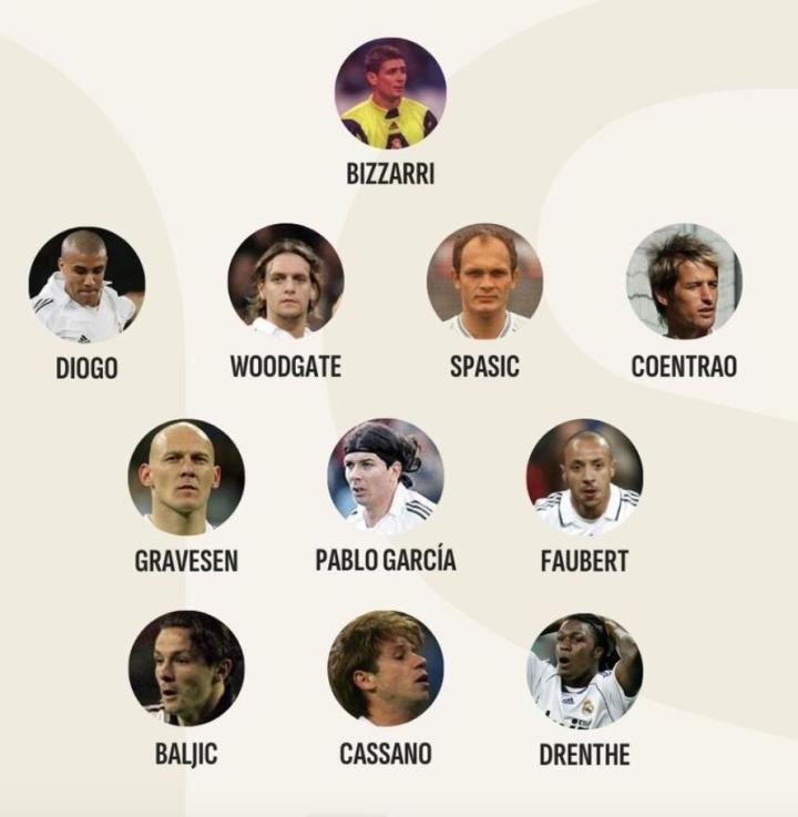 在门将位置上,比萨里以他在皇马效力时的表现跻身于这份名单之中。1999年180万欧元的转会费让他加盟皇马,但是出场12次只零封2次的表现让球迷们失望。